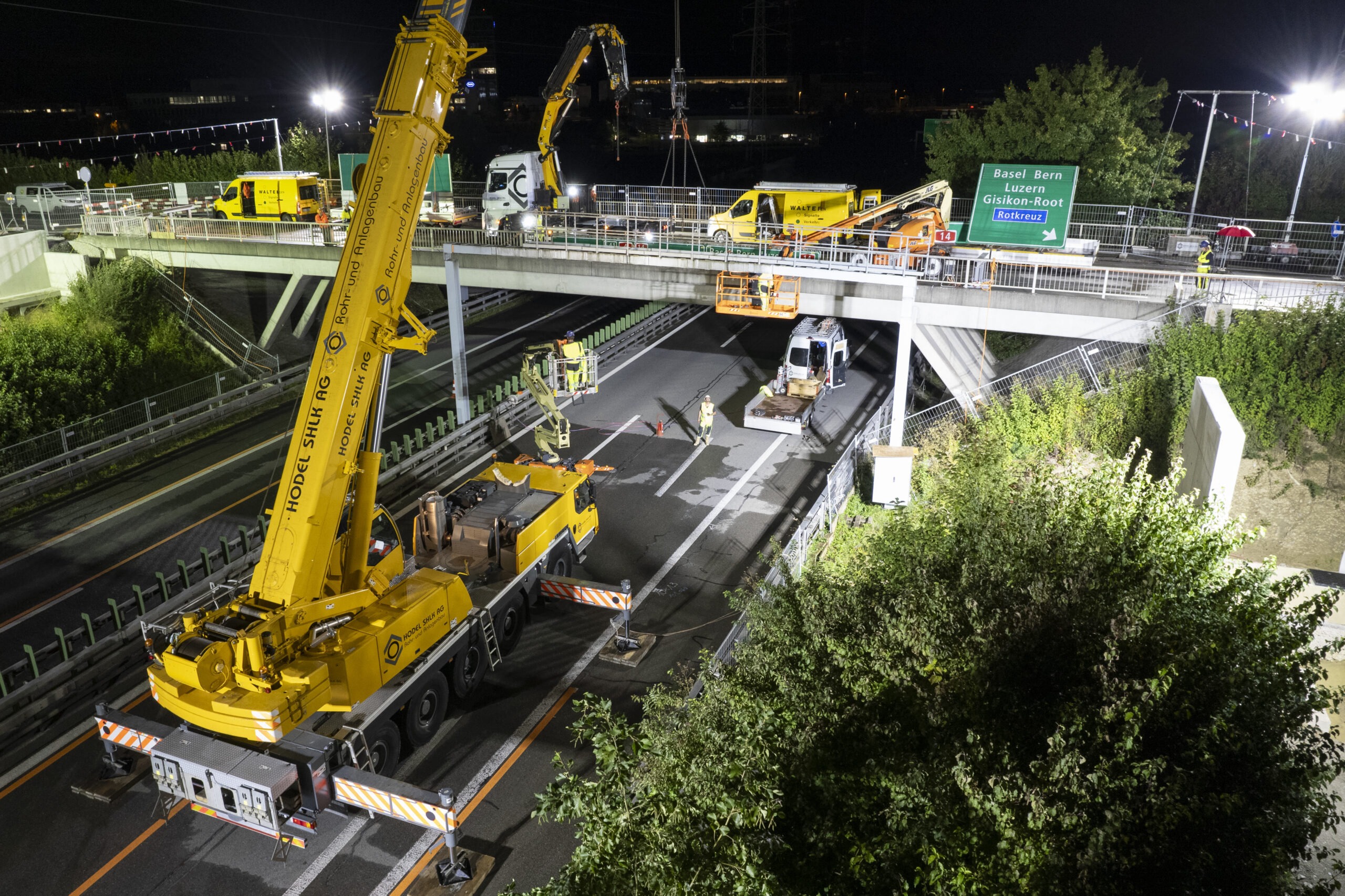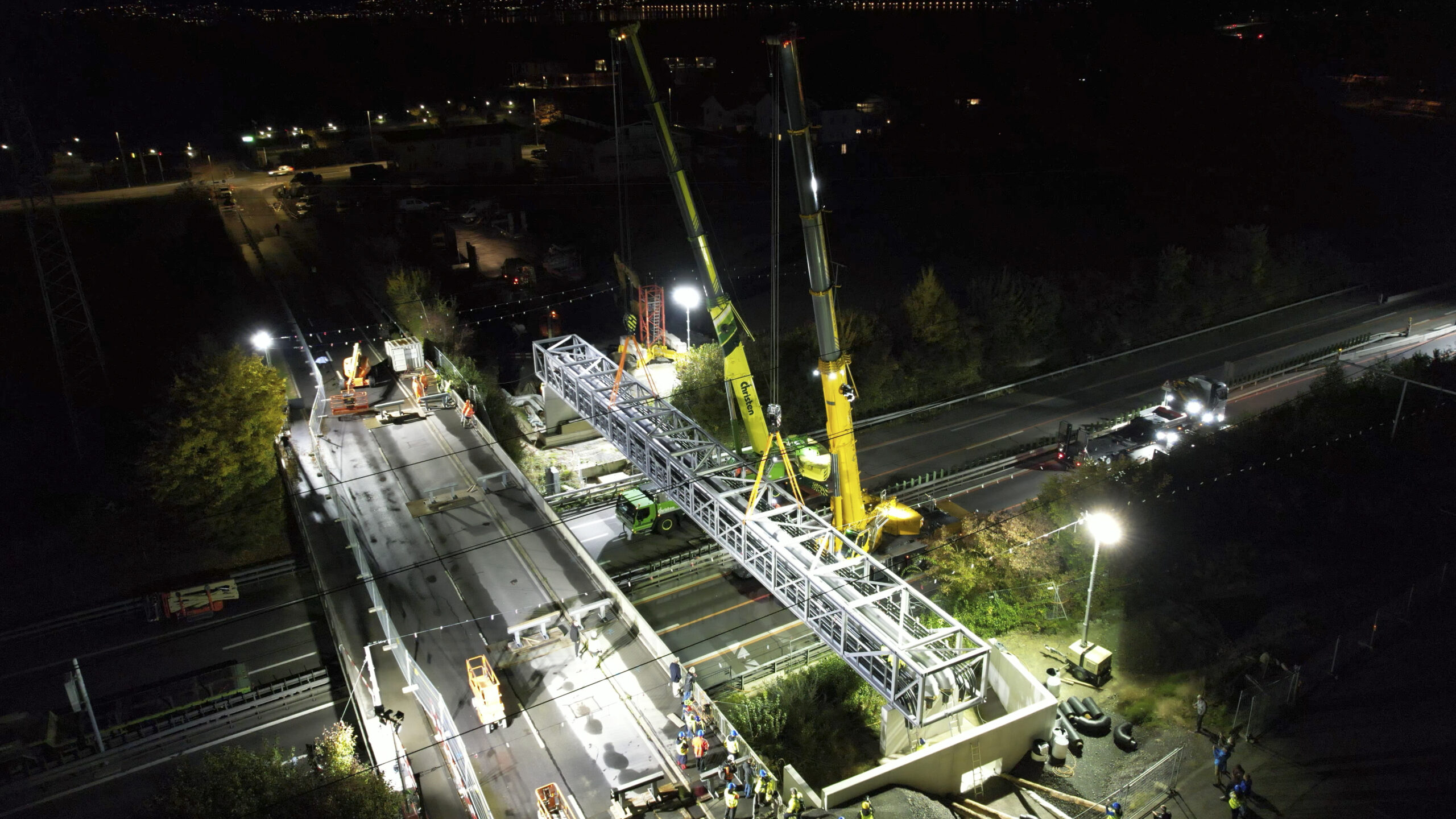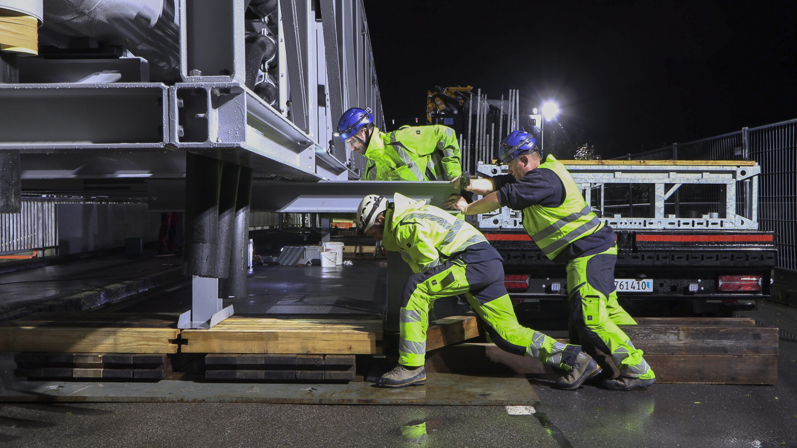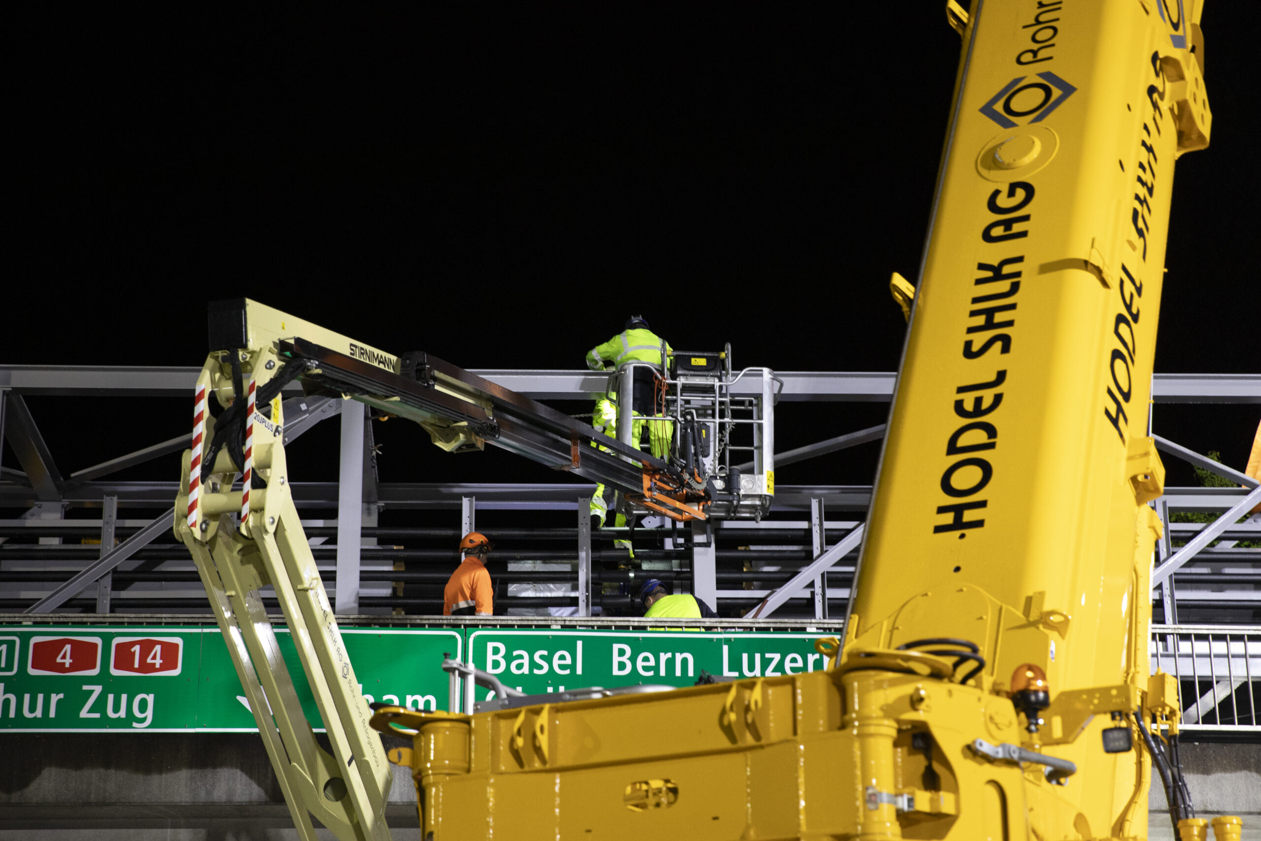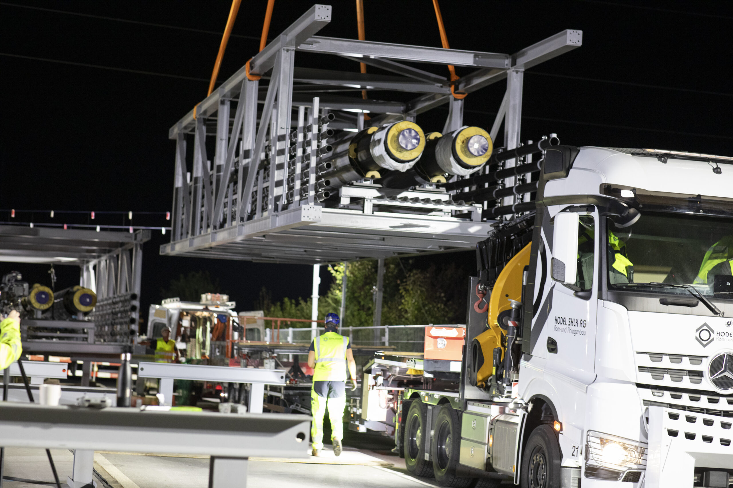 Finale Montage während nächtlicher Vollsperrung der Autobahn