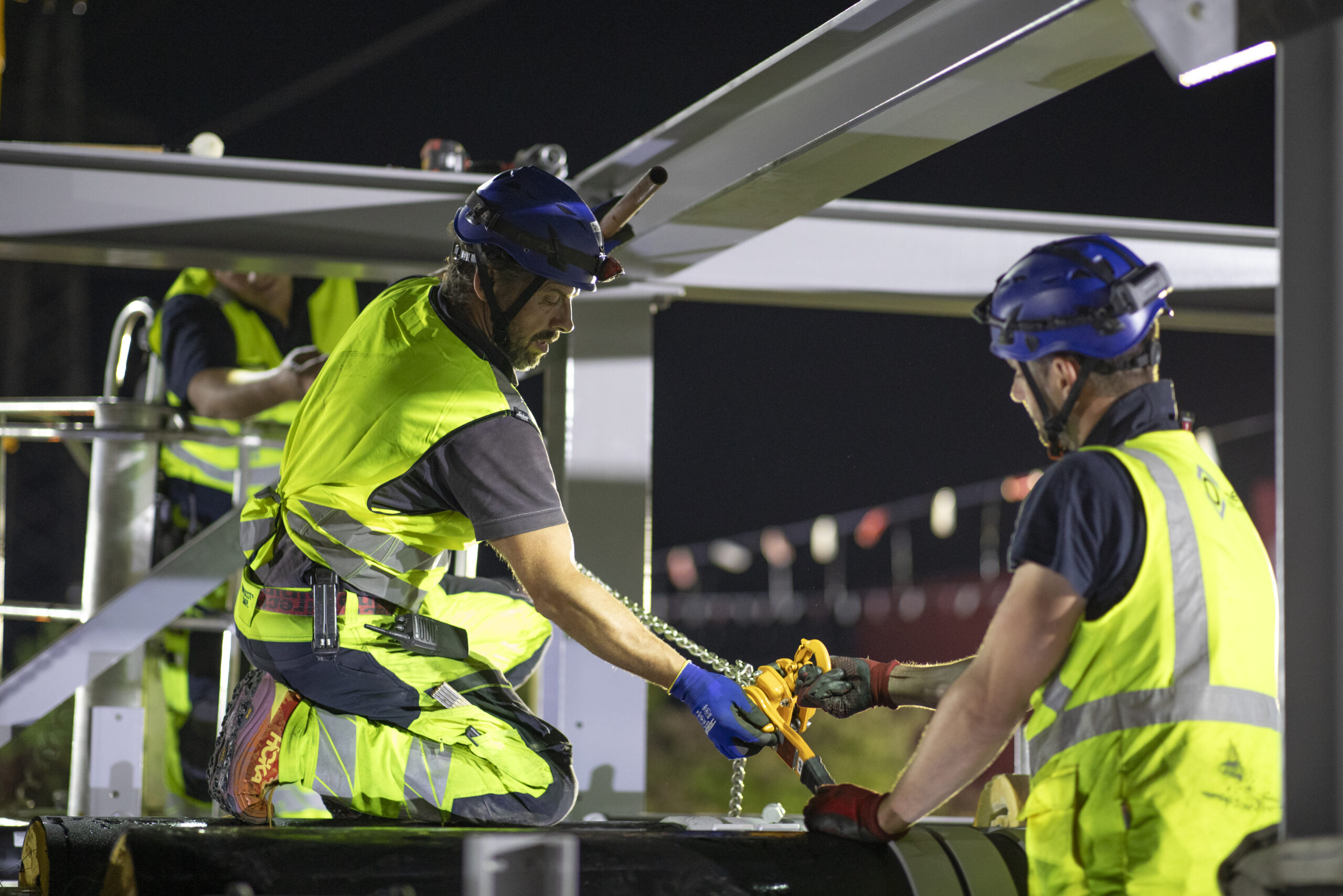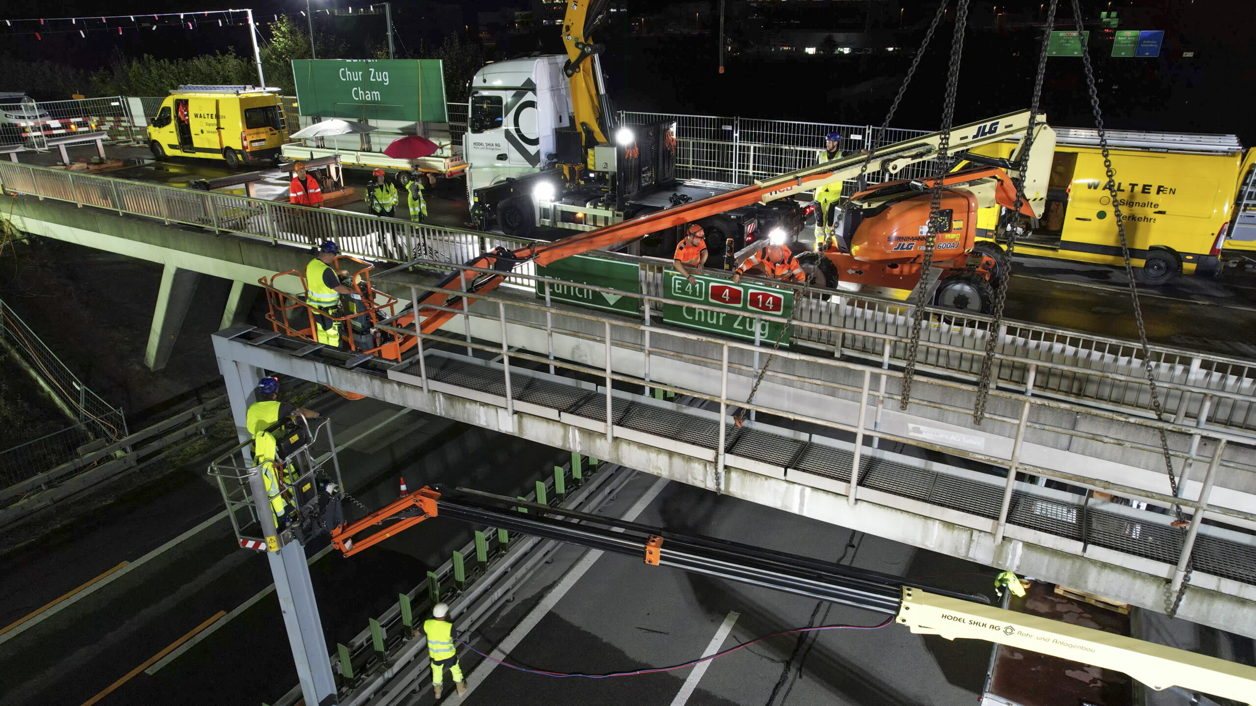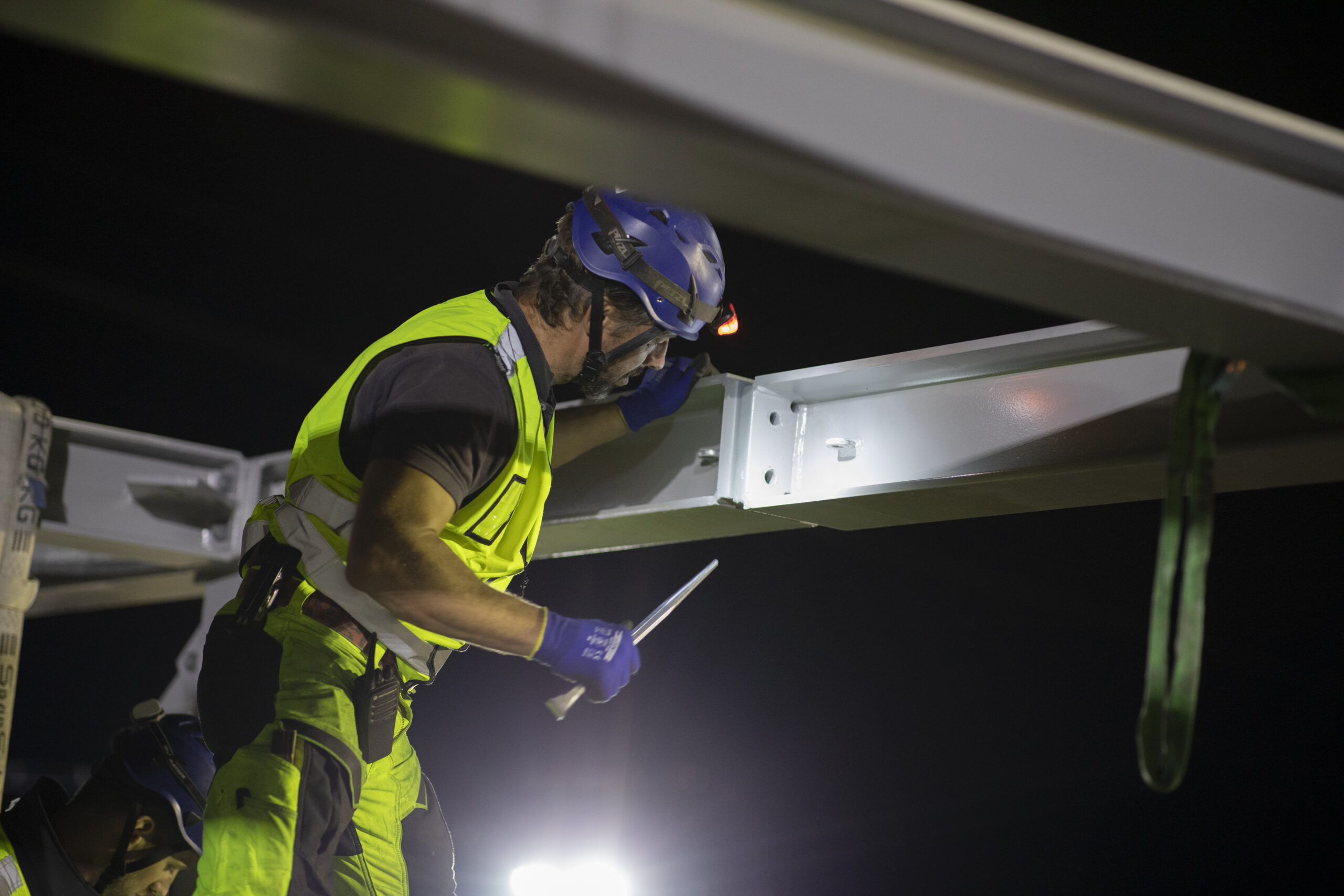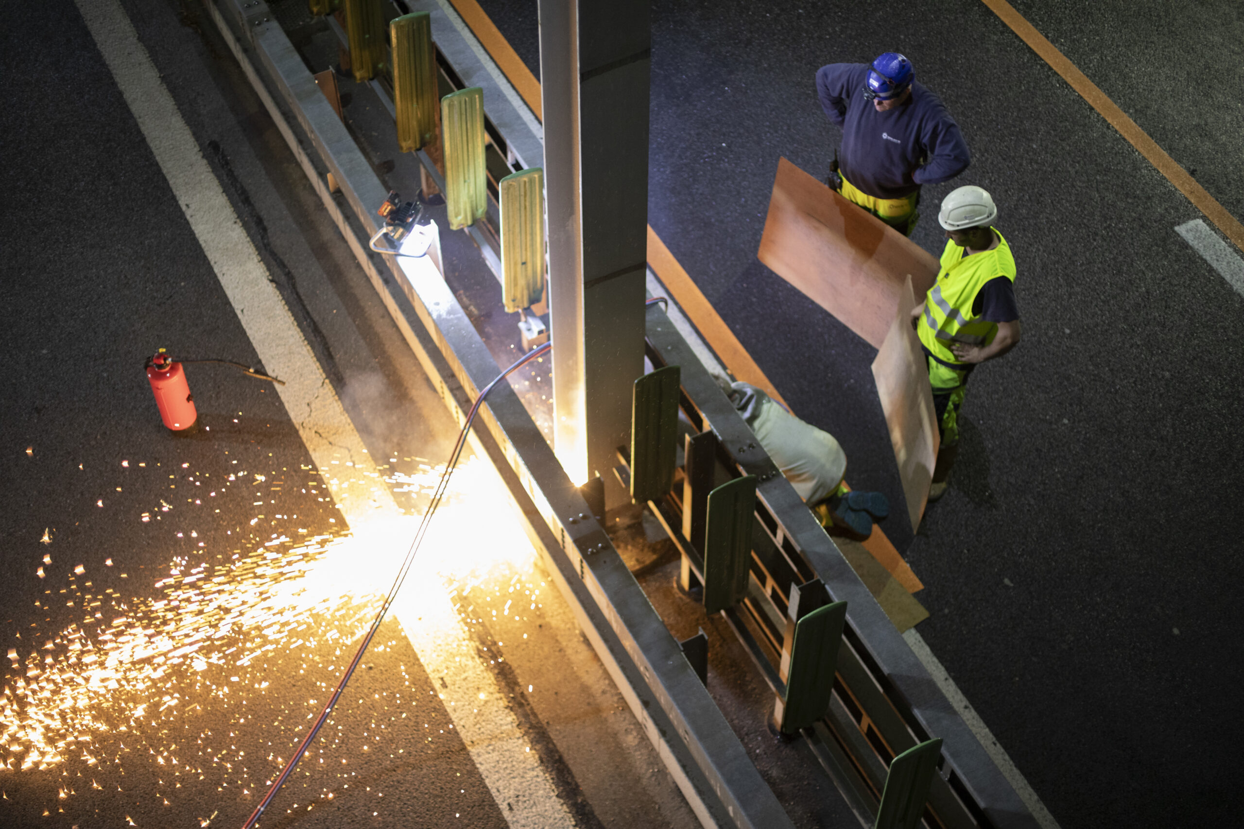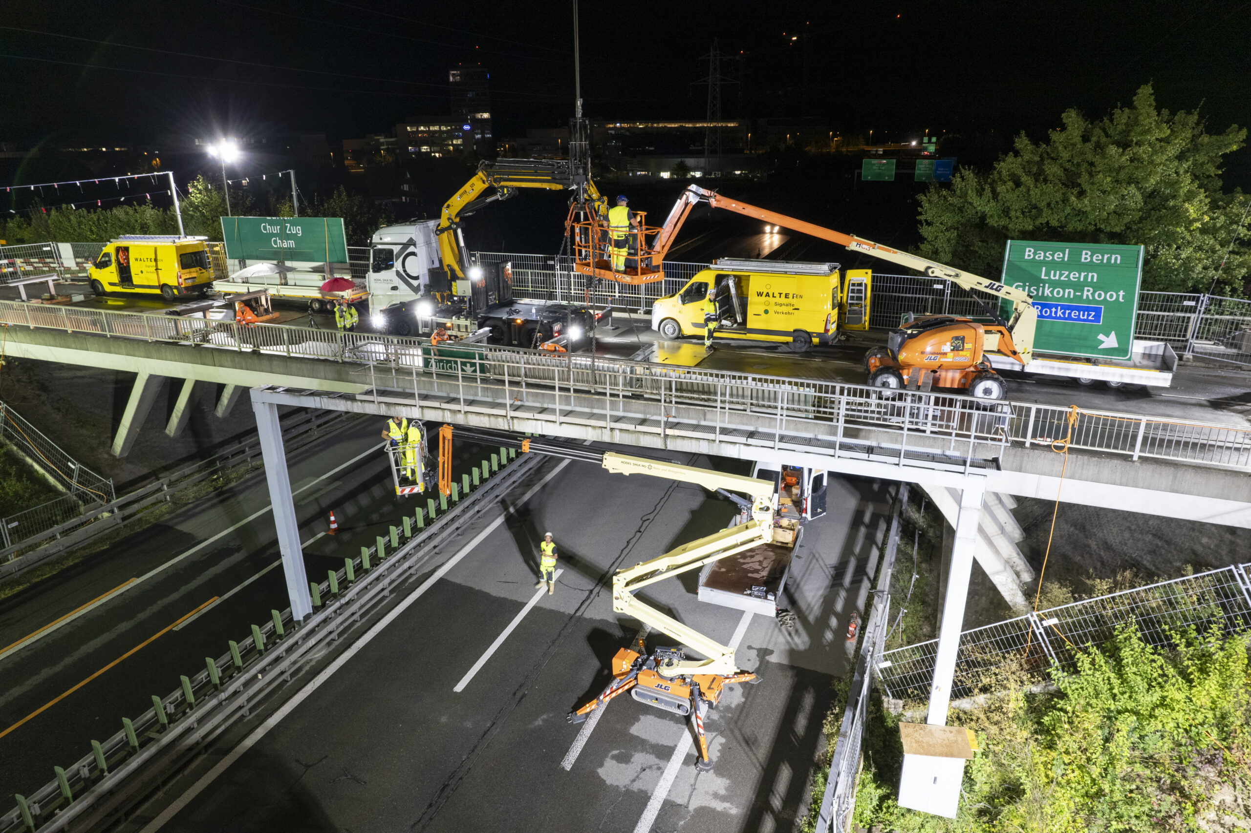 Finale Montage während nächtlicher Vollsperrung der Autobahn