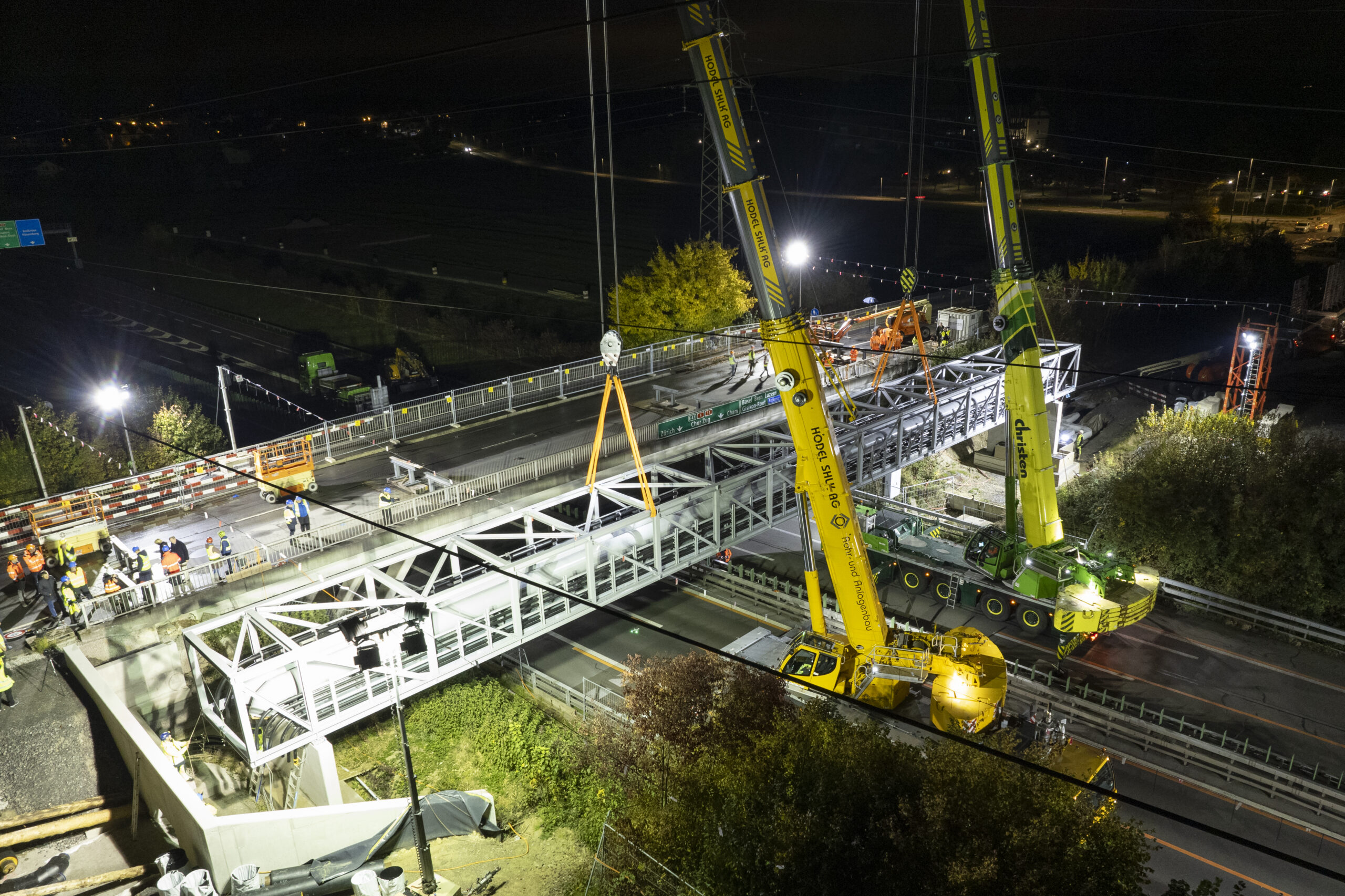 Das Projekt umfasste die Planung, Vorfertigung und Montage mehrerer rund 16 Meter langer Brückenelemente. Aufgrund der Lage über einer stark befahrenen Autobahn sowie in unmittelbarer Nähe von Hochspannungsleitungen stellte die Umsetzung höchste Anforderungen an Logistik, Sicherheit und Koordination.