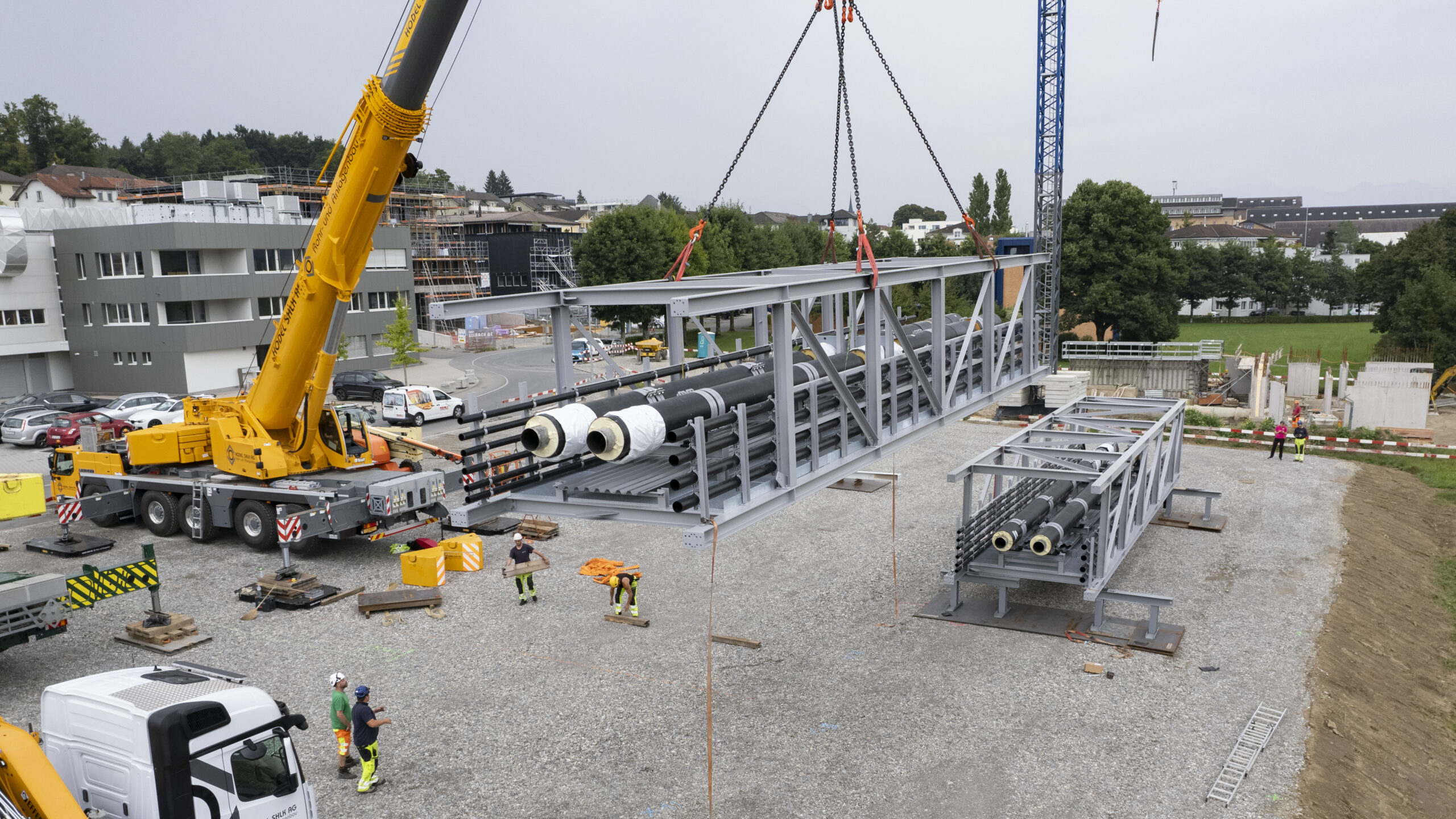 Im Auftrag der WWZ AG realisierte die Hodel SHLK AG den Bau und die Montage einer Fernwärme-Rohrleitungsbrücke in Rotkreuz.